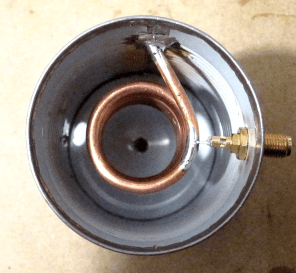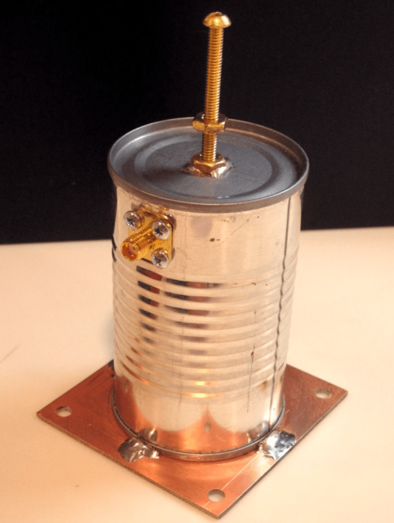 Here’s a helical filter for 70cm wavelength made from a soup can: